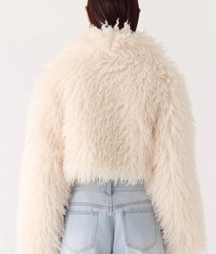 The  Cropped Faux Fur Jacket is made for nights under city lights. With its plush faux fur texture and dramatic cropped silhouette, this statement layer brings instant glamour to any PM look. Fully lined for a luxe feel, it’s the perfect throw-on for golden-hour drinks, rooftop parties, and every after-dark moment in between.