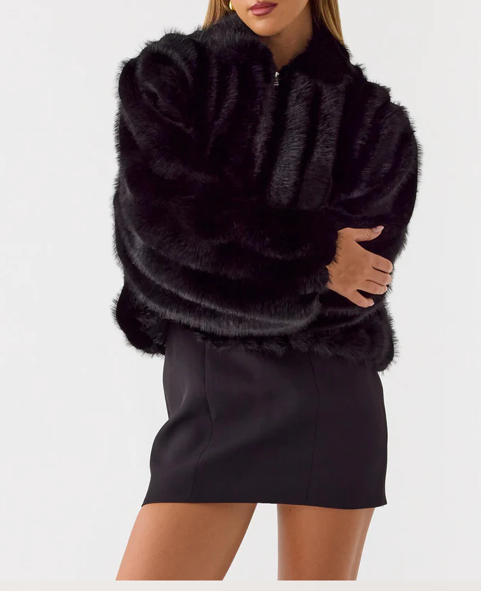 Faux Fur Jacket - Black